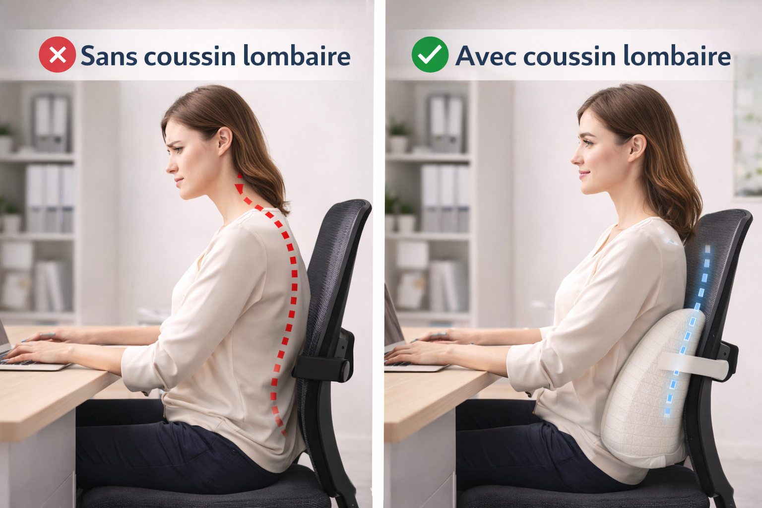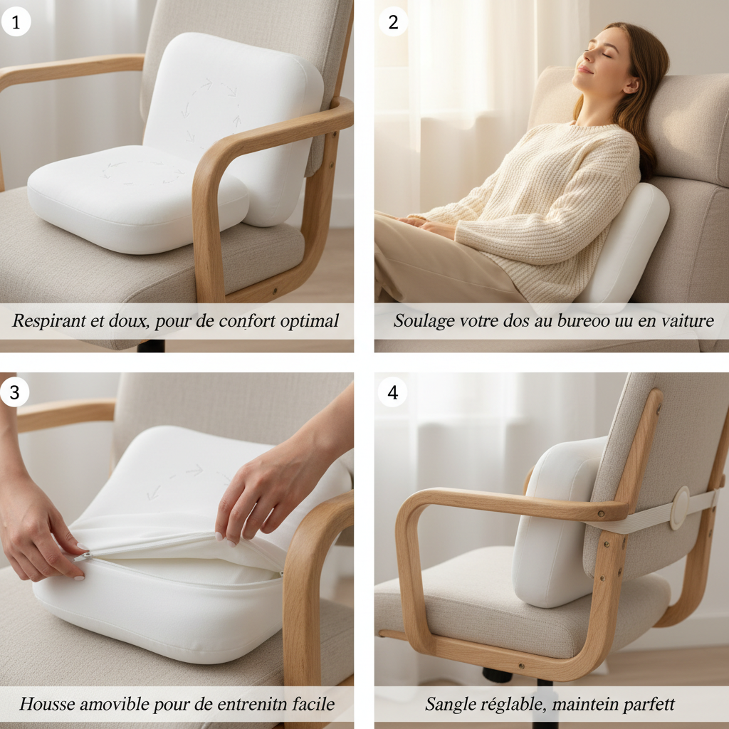 Grâce à son maintien ergonomique, ce coussin lombaire épouse naturellement votre posture pour un confort durable au quotidien.